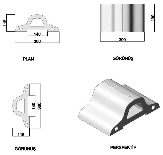 Ebatlar:A(140mm) B(190mm) C(115mm) D(300mm)